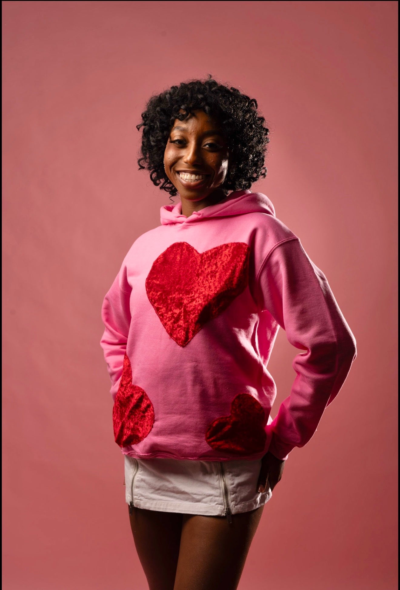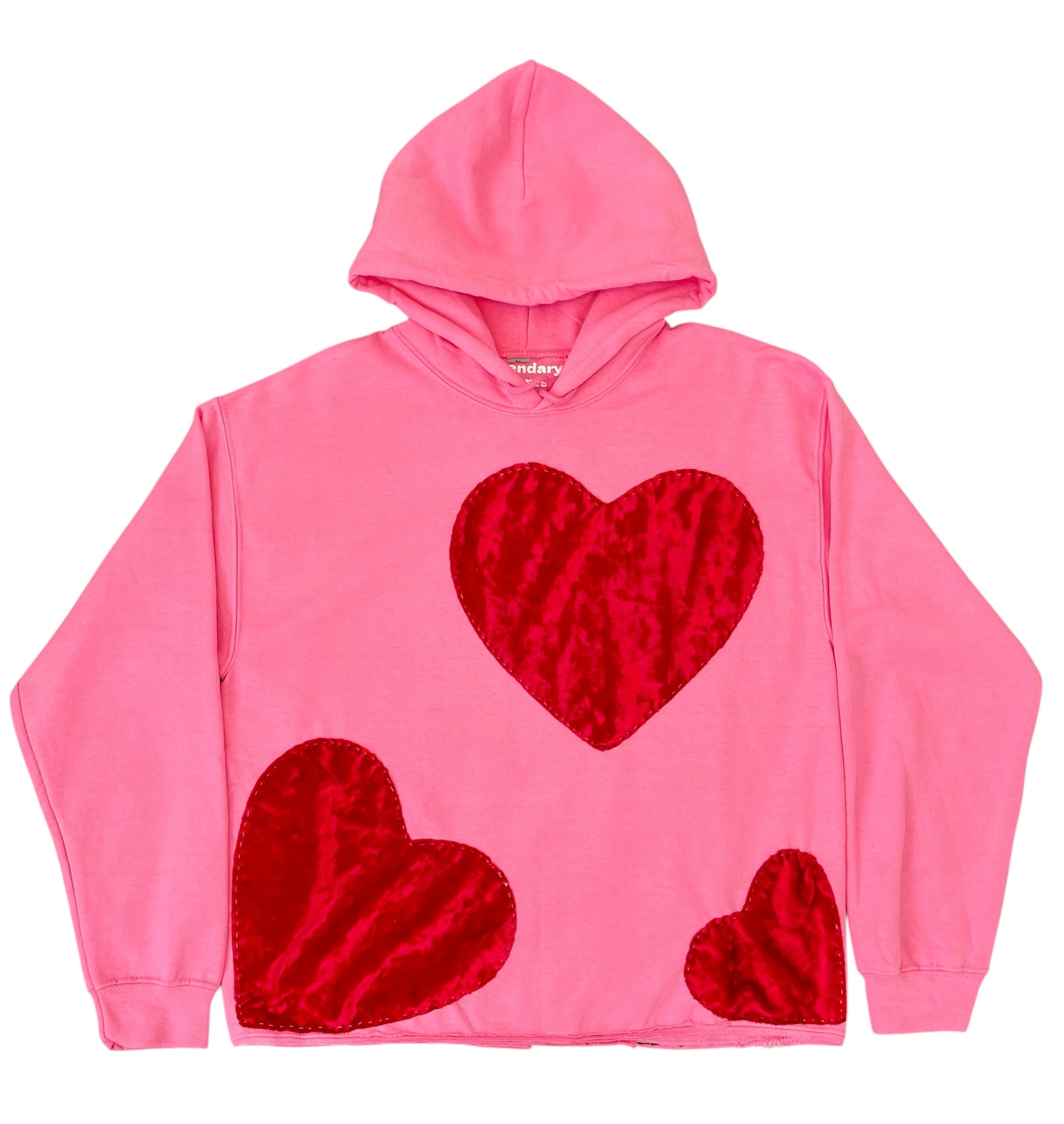 Celebrate the season in style with the Legendary Hearts October Pink Hoodie, a soft and premium cropped hoodie crafted from an 80% cotton / 20% polyester blend. Designed with plush velvet heart appliqués, this piece blends comfort, femininity, and signature Legendary Hearts flair.